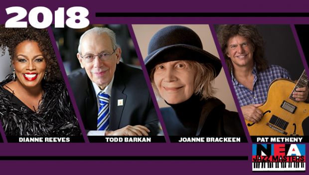 Washington, DC—Joanne Brackeen, Pat Metheny, Dianne Reeves, and Todd Barkan now join the ranks of the nation’s highest honor in jazz, the NEA Jazz Masters. The 2018 NEA Jazz Master recipients were announced this evening at a DC Jazz Festival concert at the John F. Kennedy Center for the Performing Arts in Washington, DC, where Metheny also performed. The NEA Jazz Masters are receiving this honor for their lifetime achievements and exceptional contributions to the advancement of jazz. Each will receive a $25,000 award and be honored at a tribute concert on Monday, April 16, 2018, in Washington, DC.