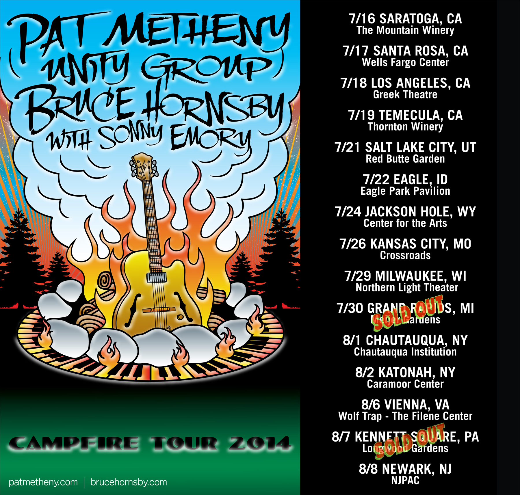 PAT METHENY UNITY GROUP (←→) BRUCE HORNSBY w/Sonny Emory CAMPFIRE TOUR 2014